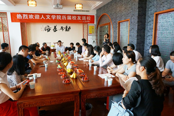 当天上午,校友座谈会在语言文化体验中心举行。人文学院负责人,团委、学工办、各教研室等相关老师以及在校学生代表参加了座谈会。