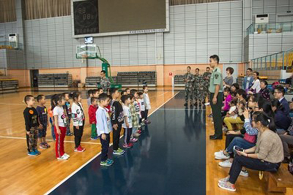 “解放军叔叔”的表演是亲子游的压轴节目。孩子们口中的“解放军叔叔”是该校全部由在校大学生组成的军训教导队。列队、军体拳表演,小朋友们看的津津有味。表演结束,教导队的成员还现场教小朋友们叠军被、站军姿、行军礼……小天使们一个个学得别提有多认真了。
