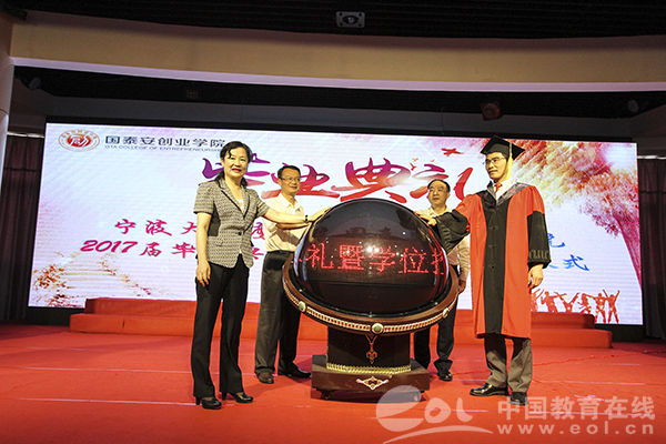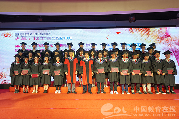 中国教育在线浙江站讯 (编辑 白菁洁 通讯员 杨晶晶)6月10日,宁波大红鹰学院国泰安创业学院首届本科生毕业典礼暨学士学位授予仪式举行。当天,该院首批154名本科生顺利毕业,其中118人独立创业,创办并注册了21家企业,另有5人作为“创二代”投身到家族企业二次创业和转型升级中。