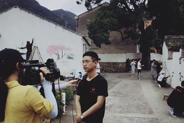 这支团队由16名学生和2名指导老师组成。视觉传达专业的吴豪泽同学说到:“们在给予杨蓬岙村技术支持,帮助该村文化振兴的同时,一定要了解村民的想法,迎合他们的心理需求,真正的为乡村振兴出力,做实事。”