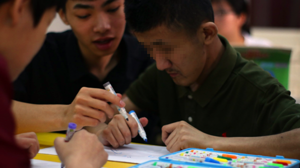 在画画上,有的喜憨儿甚至无法完整的画好一个图样,团队成员就和他一同握笔,共同完成一幅画。虽然喜憨儿面容与常人不大相似,但对新知识的渴求一点都不比常人差。大学生们期待参加更多这样的暑期实践活动,让更多需要帮助的人们受益。