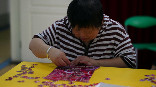下午,实践团队为喜憨儿带来了一节不一样的课堂乐趣。喜憨儿可以根据自己的喜好选择画画、超轻粘土创意或者拼图。