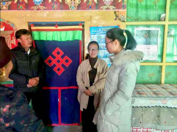 藏民们普遍不懂普通话,孟祥婷就只能拉上会藏语的同事做翻译,才能与藏民沟通,向他们宣传扶贫政策,给他们献计献策,帮助其脱贫。