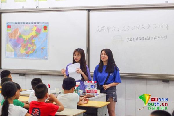 十四天里,各位任课老师分工明确,准备充分,各项教学活动均得以顺利进行。本次支教活动,包含三个部分内容,一是教学及军训部分,二是公益宣传部分,三是汇演部分。在课程安排中,除了剪纸、超轻粘土、风筝等益智类课程外,为了紧跟时代潮流,响应时代号召,特别开设了“庆祝中华人民共和国成立70周年”“垃圾分类”“国防教育”等专题课程。
