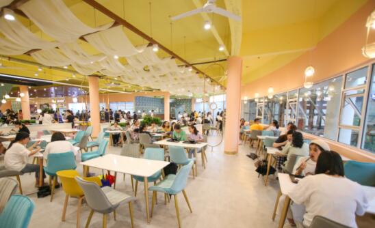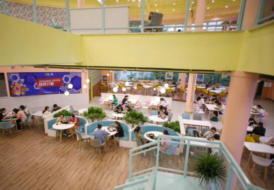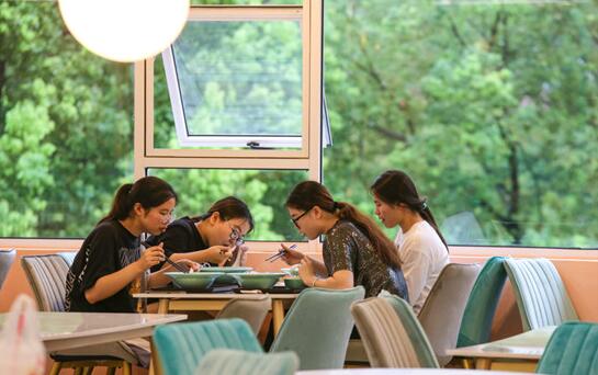 “这个‘网红’餐厅可不简单!”校后勤处负责人耿浩告诉记者说,“我们特别设计了交互区和书屋区,目的就是不单单只满足师生的就餐需求,更要把这个餐厅打造成一个大型的‘非正式学习空间’,师生们平时交流、讨论、聚会都可以选择来这里。”