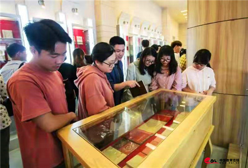 “在整理的过程中,我们切身体会到了这些年代久远的书籍所蕴含的深意。加之卢炯先生也有意将他的藏品公开展示,以助推红色文化传播与红色基因的传承。我就想,要是能在我们学校展出就太好了,也可以让同学们都看一看。”付晟的想法得到了学校宣传部和图书馆的支持。书展启幕后吸引了不少师生前往阅读品析。