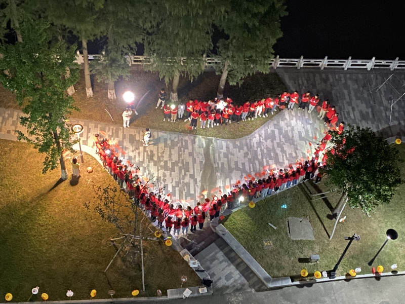 亮灯仪式后,学生又举行了快闪活动,作为参与者之一盛晓洁难掩内心的激动:“有一种表白,叫‘我爱你中国!’当河对岸的歌声响起,心里是自豪,当灯一盏盏亮起,心里是感动,当我们齐声唱起‘我和我的祖国’,心里是我的祖国。”