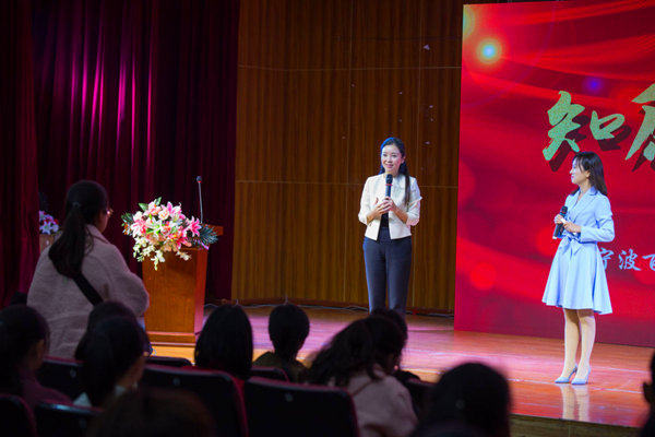 11月20日下午,宁波电视台首席播音员李飒作为“知行新说——宁波百名兼职思政导师进高校”活动的主讲人,出现在了宁波财经学院的报告厅。