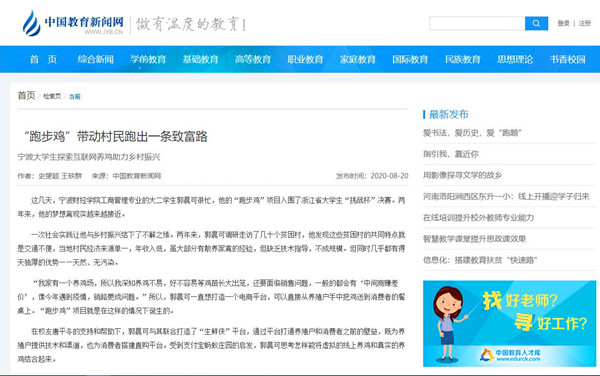 【中国教育新闻网】“跑步鸡”带动村民跑出一条致富路 宁财大学生探索互联网养鸡助力乡村振兴