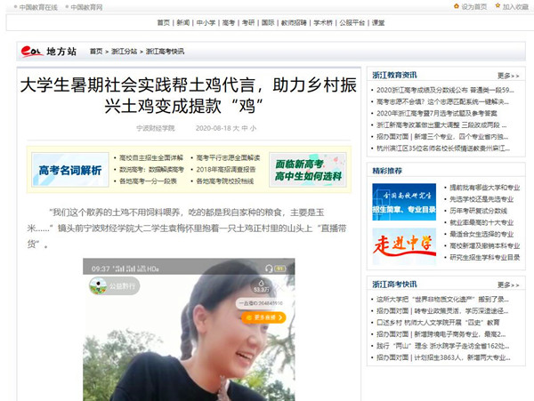 【中国教育在线】宁财大学生暑期社会实践帮土鸡代言,助力乡村振兴土鸡变成提款“鸡”