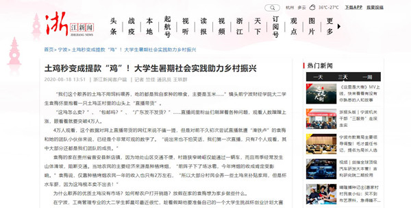 【浙江新闻】土鸡秒变成提款“鸡”!宁财大学生暑期社会实践助力乡村振兴