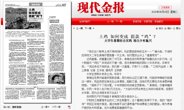 【现代金报】宁财院大学生暑期社会实践 助力乡村振兴