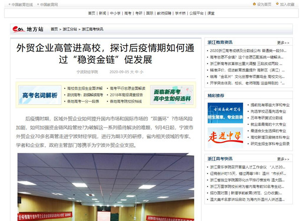 【中国教育在线】外贸企业高管进宁财院,探讨后疫情期如何通过“稳资金链”促发展