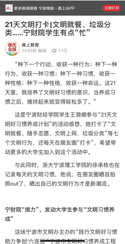 【甬上客户端】21天文明打卡|文明就餐、垃圾分类……宁财院学生有点“忙”