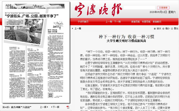 【宁波晚报】宁财院大学生晒文明好习惯成新风尚