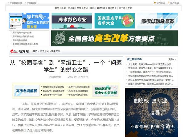 【中国教育在线】从“校园黑客”到“网络卫士”,宁财院一另类学生的蜕变之路