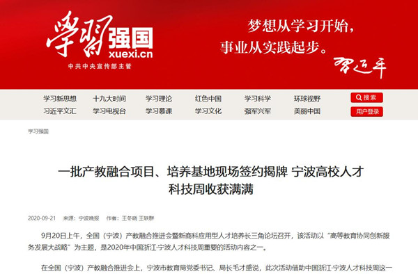 【学习强国】一批产教融合项目、培养基地现场签约揭牌 宁波高校人才科技周收获满满