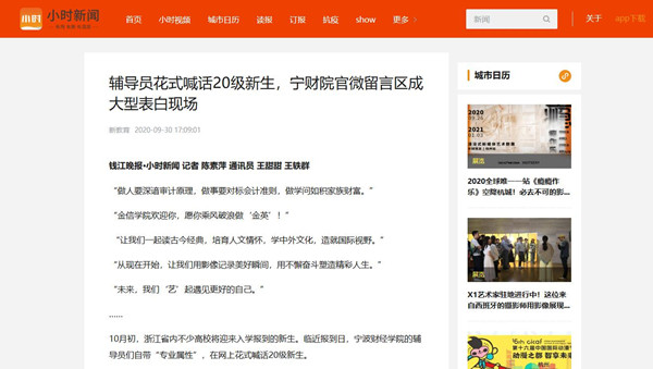【钱江晚报】辅导员花式喊话20级新生,宁财院官微留言区成大型表白现场