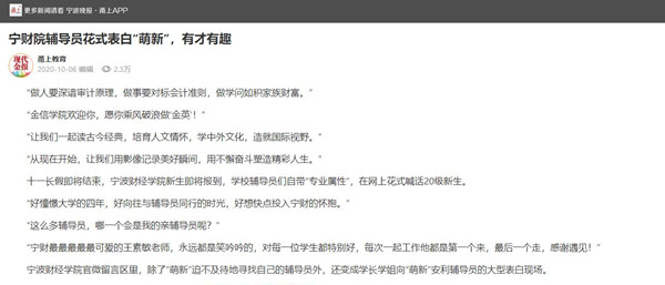 【宁波晚报甬上客户端】宁财院辅导员花式表白“萌新”,有才有趣