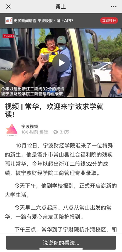【宁波晚报甬上客户端】常华,欢迎来宁波财经学院求学就读!