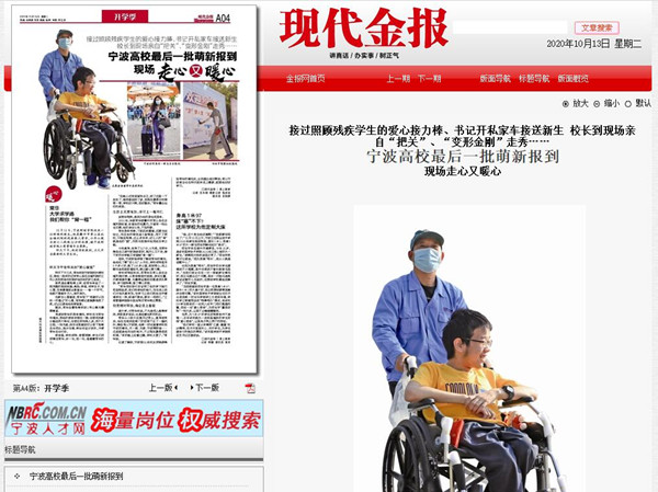 【现代金报】宁波财经学院接过照顾残疾学生的爱心接力棒