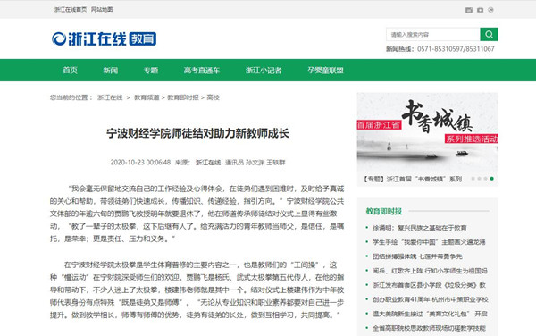【浙江在线】宁波财经学院师徒结对助力新教师成长