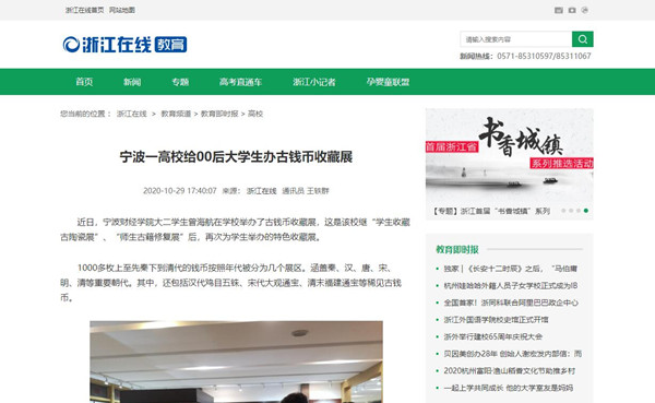 【浙江在线】宁波财经学院给00后大学生办古钱币收藏展