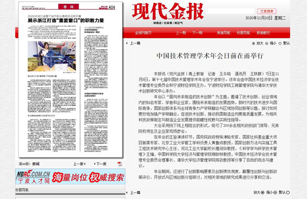 【现代金报】宁财院联合主办的中国技术管理学术年会日前在甬举行