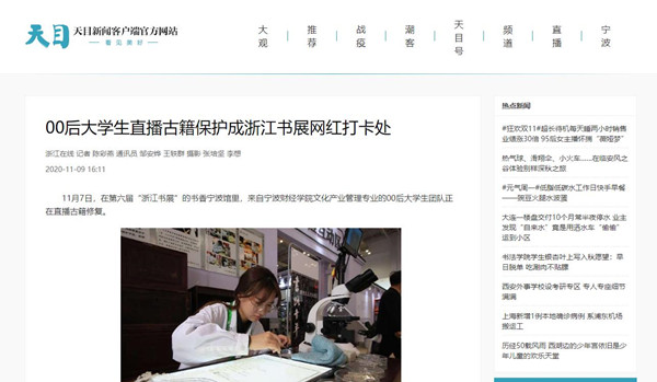 【天目客户端】宁财院00后大学生直播古籍保护成浙江书展网红打卡处