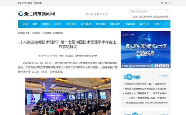 【浙江在线】未来制造如何技术创新?宁财院联合主办的第十七届中国技术管理学术年会上专家这样说