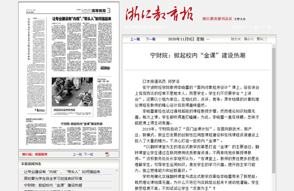 【浙江教育报】宁财院:掀起校内“金课”建设热潮