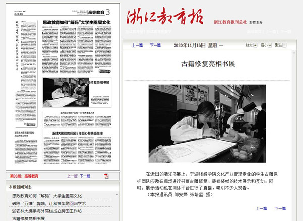 【浙江教育报】宁波财经学院学生古籍修复亮相书展