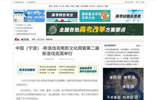【中国教育在线】宁波财经学院联合主办的中国(宁波)-斯洛伐克电影文化周暨第二届斯洛伐克周举行