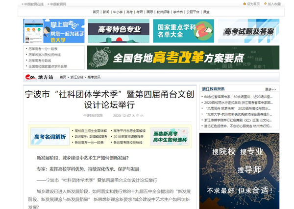 【中国教育在线】宁波财经学院联合主办的宁波市“社科团体学术季”暨第四届甬台文创设计论坛举行