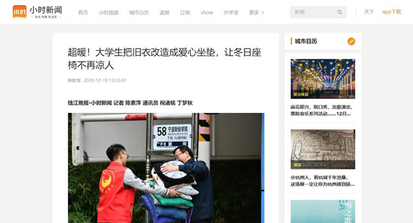 【钱江晚报】超暖!宁财院大学生把旧衣改造成爱心坐垫,让冬日座椅不再凉人