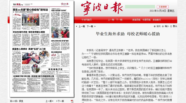 【宁波日报】毕业生海外求助 宁财院老师暖心援助