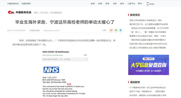 【中国教育在线】毕业生海外求助,宁波财经学院老师的举动太暖心了