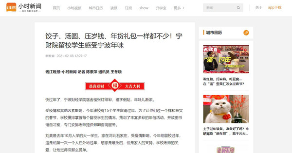 【钱江晚报】饺子、汤圆、压岁钱、年货礼包一样都不少!宁财院留校学生感受宁波年味