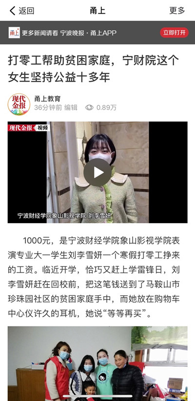【宁波晚报甬上客户端】打零工帮助贫困家庭,宁财院这个女生坚持公益十多年