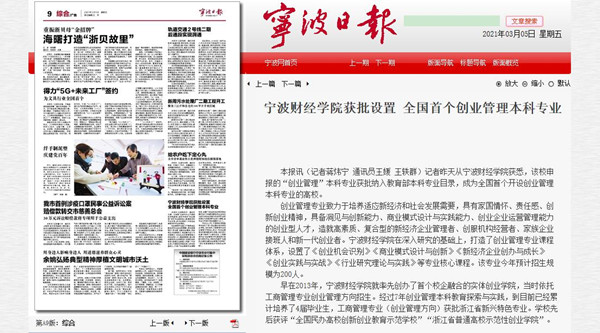 【宁波日报】宁波财经学院获批设置 全国首个创业管理本科专业