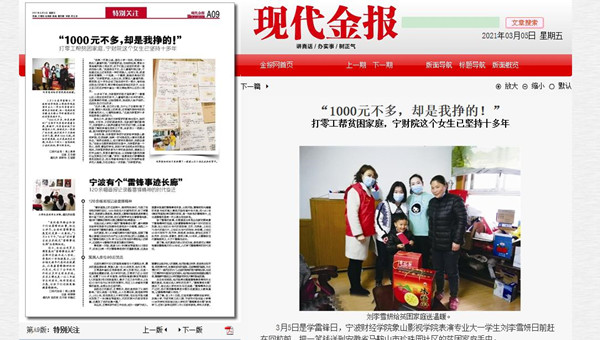 【现代金报】打零工帮贫困家庭,宁财院这个女生已坚持十多年