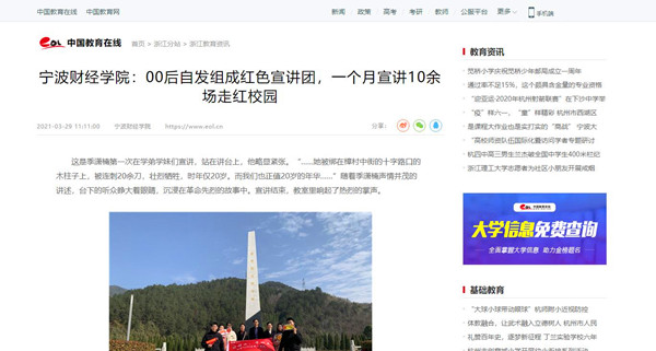 【中国教育在线】宁波财经学院:00后自发组成红色宣讲团,一个月宣讲10余场走红校园