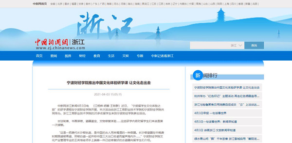 【中国新闻网】宁波财经学院推出中国文化体验研学课 让文化走出去