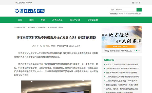 【浙江在线】浙江自贸区扩区给宁波带来怎样的发展机遇?专家在宁波财经学院举办的论坛活动上这样说