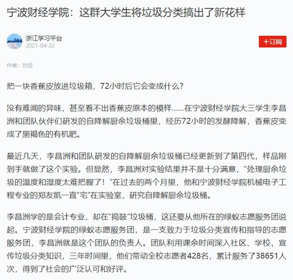【学习强国】宁波财经学院:这群大学生将垃圾分类搞出了新花样
