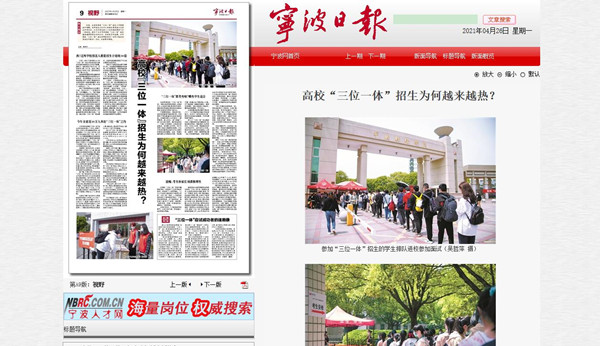 【宁波日报】宁波财经学院“三位一体”招生为何越来越热?