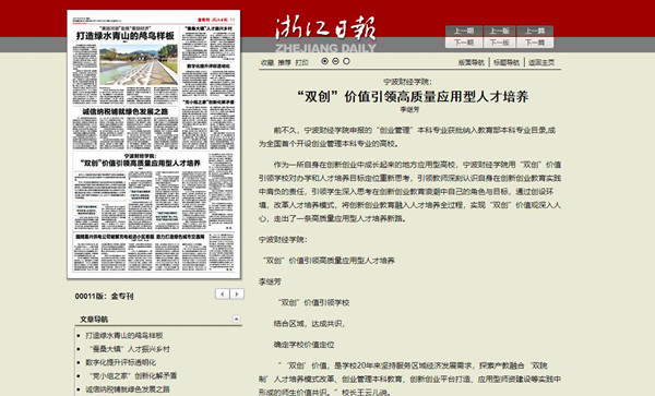 【浙江日报】宁波财经学院:“双创”价值引领高质量应用型人才培养