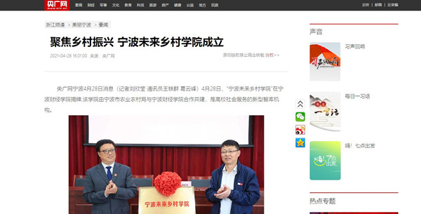 【央广网】聚焦乡村振兴 宁波未来乡村学院在宁波财经学院成立