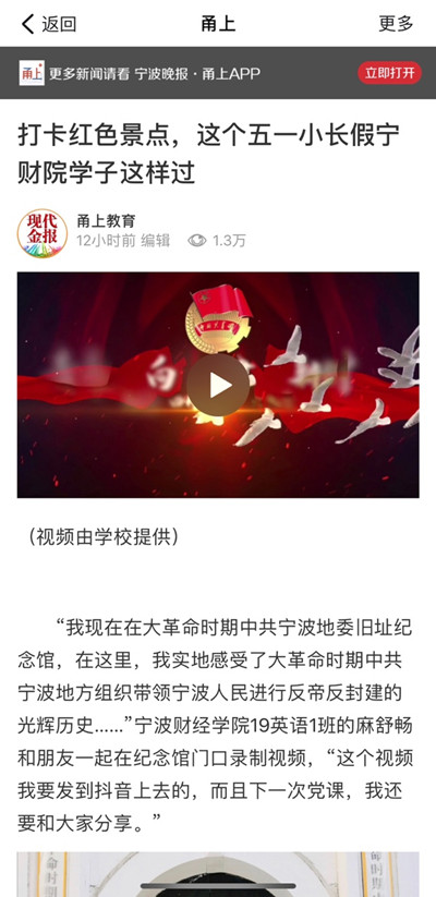 【宁波晚报甬上客户端】打卡红色景点,这个五一小长假宁财院学子这样过