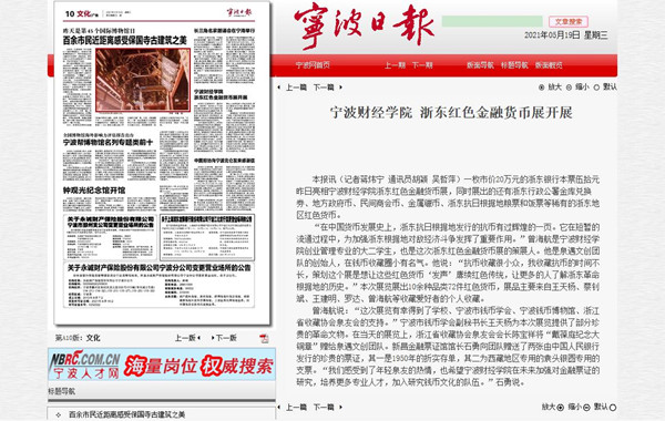 【宁波日报】宁波财经学院 浙东红色金融货币展开展